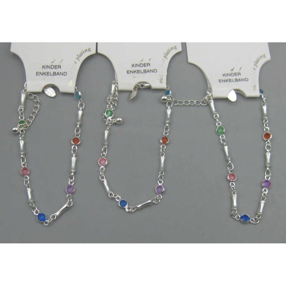 Mooi eenvoudig enkelbandje zilverkleurig met gekleurde stenen