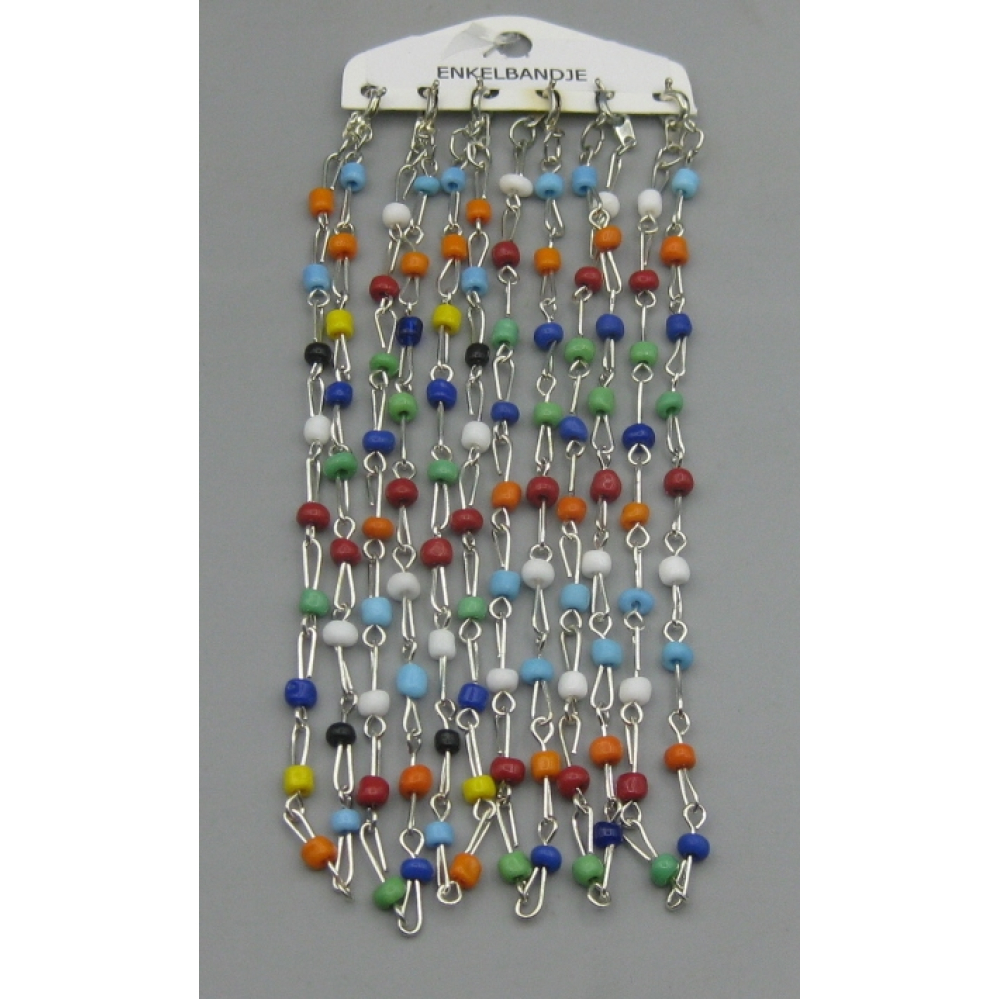 Mooi eenvoudig enkelbandje in zilverkleur mkleurige steentjes