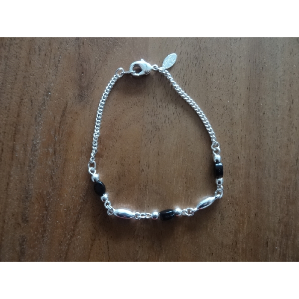 Armband dames nikkelvrij zilverkleur met 3 zwarte steentjes
