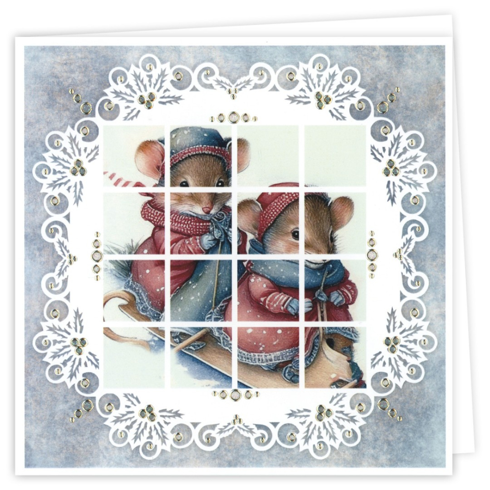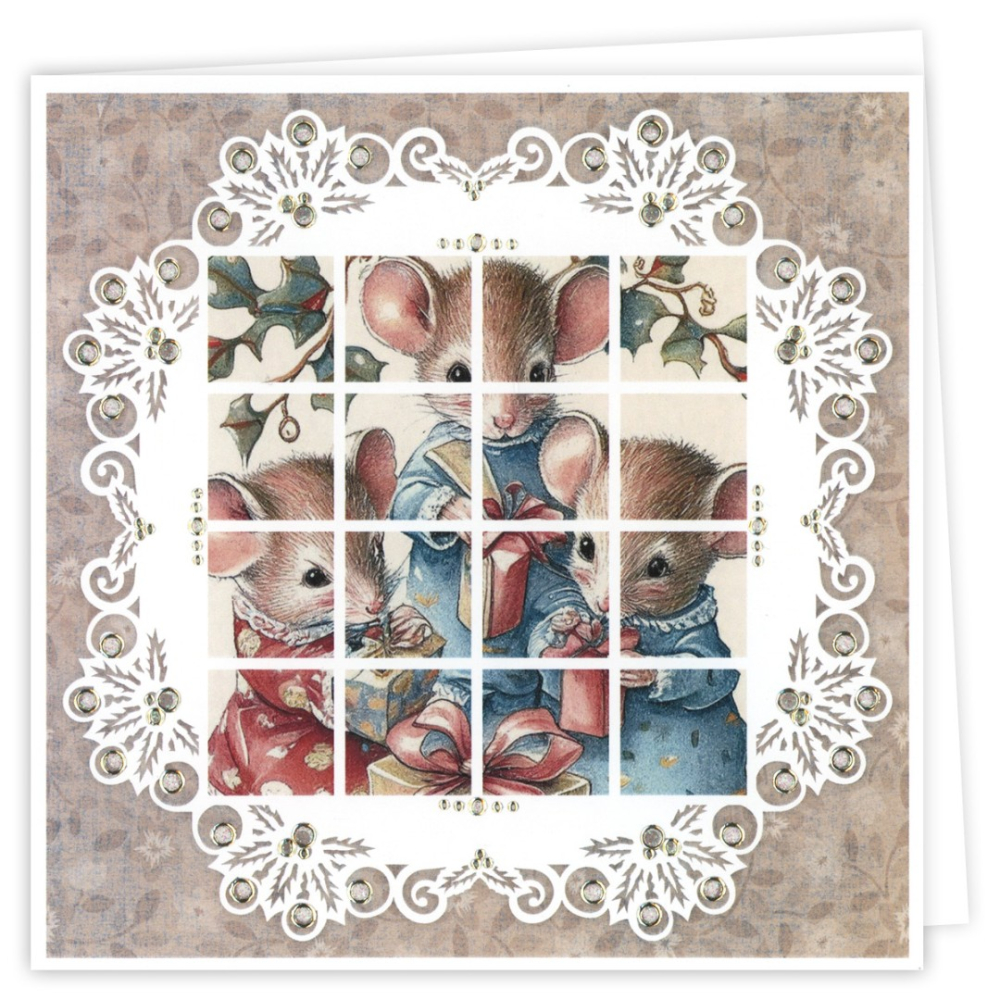 Vele Bloxxx maken samen één 3D-afbeelding. Door losse blokjes op uitgekiende plaatsen op de voorgedrukte afbeelding te plaatsen creëer je diepte op de kaart. Werk de kaart af met Shiny Details voor een extra chic resultaat. De set bevat alle benodigdheden voor het creëren van 3 vierkante kaarten. 3 voorgedrukte wenskaarten, voldoende losse Bloxxx, Shiny Details, foamblokjes en 3 enveloppen. Dankzij het voorgedrukte patroon kunnen de kaarten gemaakt worden zonder gebruik van een lichtbak.