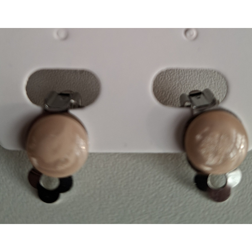 Clipoorbellen rvs zilverkleur- beige cabochon