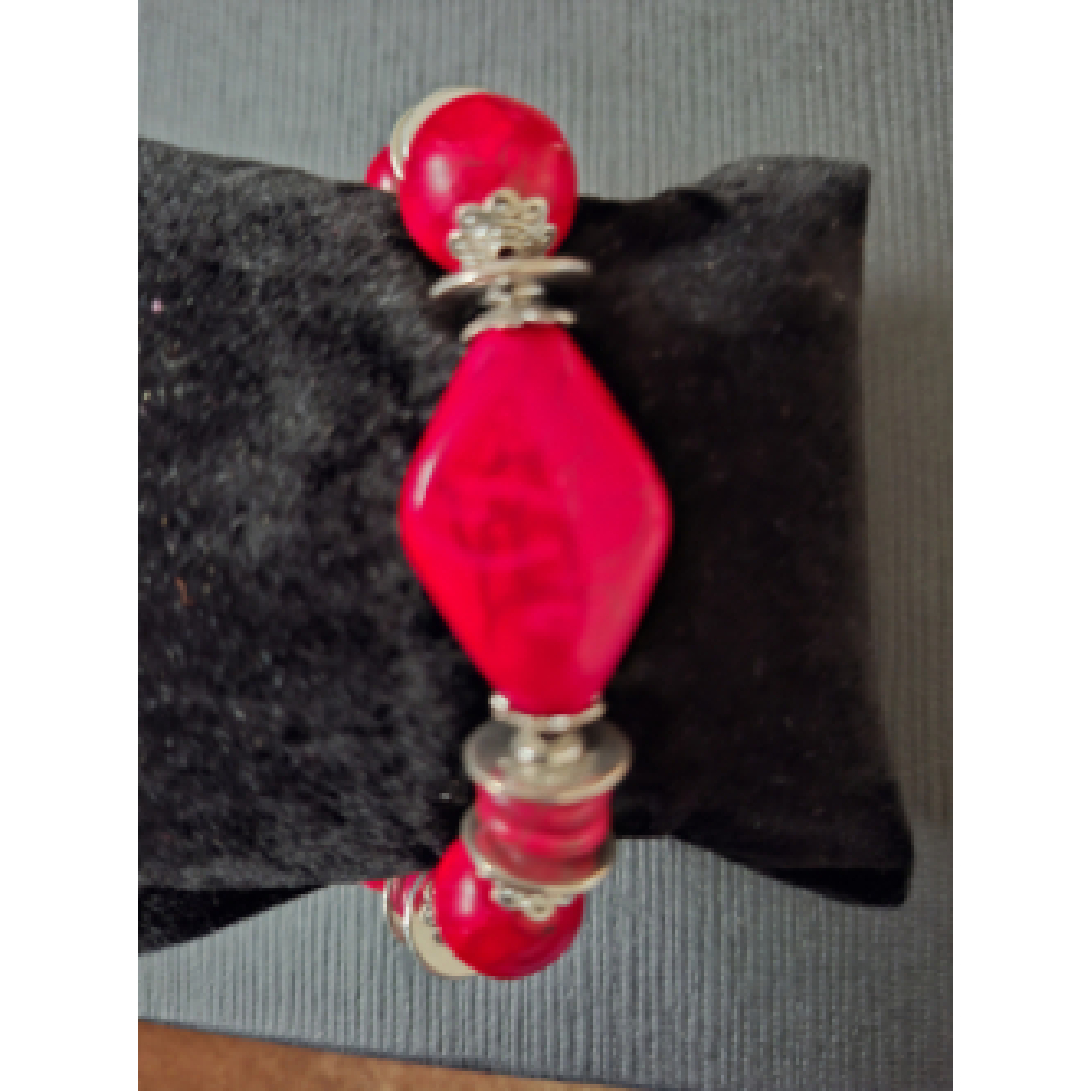 Een mooie armband met steenachtige kralen en metaalaccenten.