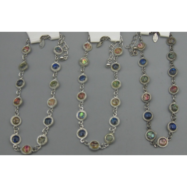 Mooi eenvoudig enkelbandje met verschillende gekleurde ovale stenen