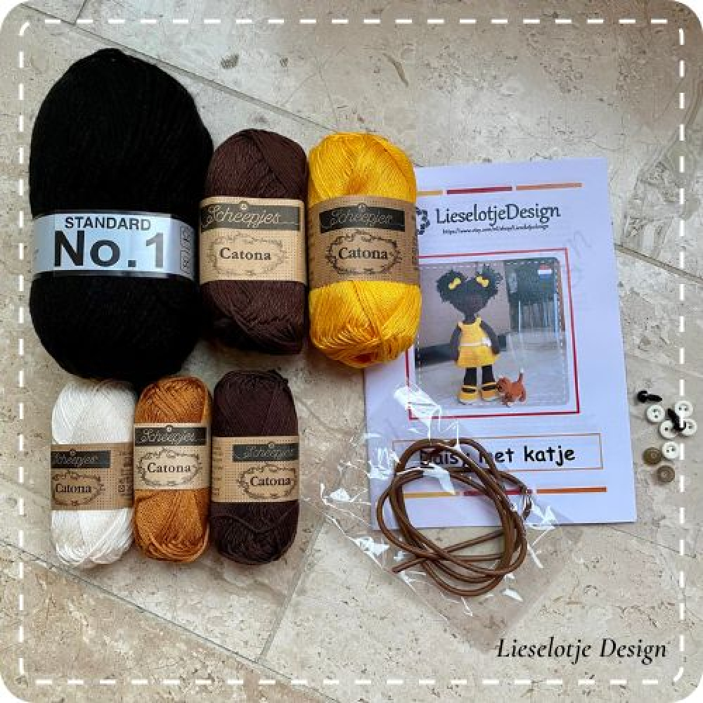 Haakpakket pop Daisy met katje is een patroon voor een leuke zomerse aankleedpop. Het patroon voor Daisy en haar katje is volledig uitgeschreven en voorzien van vele gedetailleerde foto's.