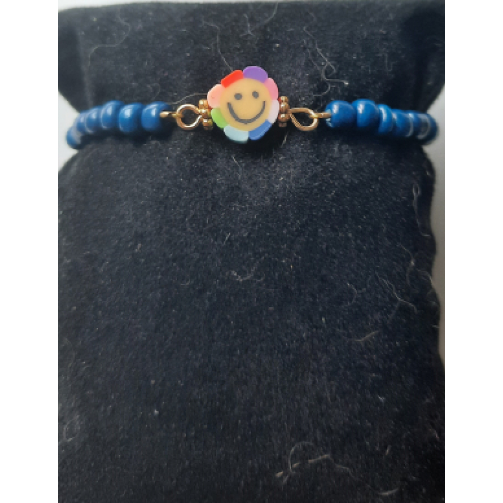 Kinderarmband met kralen 16cm blauw met een gekleurde polymeer smiley