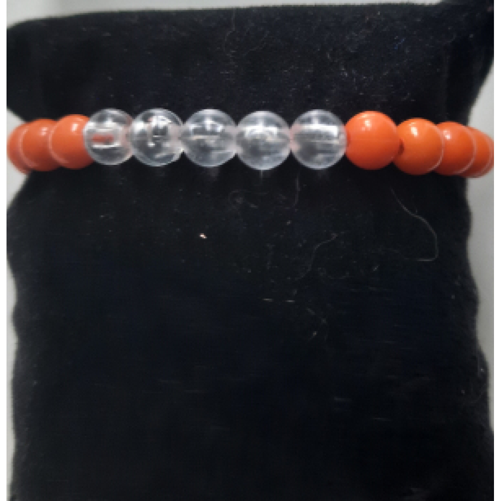 De armband is geregen op metaaldraad en heeft een ronde sluiting