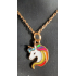 Kinderketting goudkleur met als hanger een eenhoorn in geel/oranje/rood