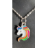Kinderketting zilverkleur met als hanger een eenhoorn in oranje/rose/groen