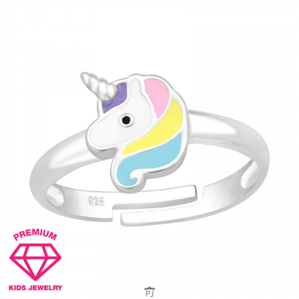 Een leuke zilveren verstelbare ring met een eenhoorn.