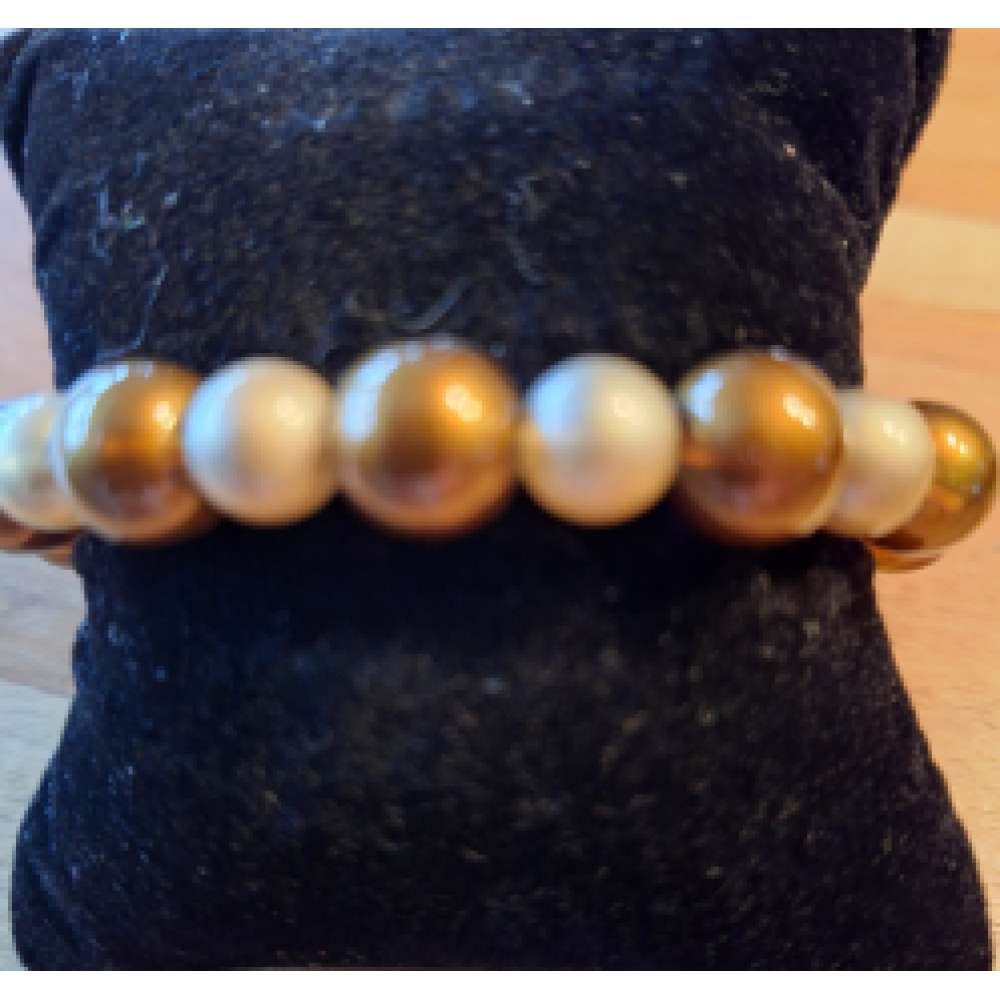 Een mooie armband met een 8 mm parels in de kleuren bruin en beige
