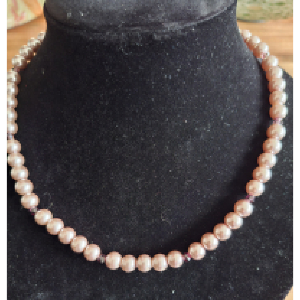 Deze ketting is gemaakt van lilakleurige glaskralen van 6 mm met daartussen een bicone in verwerkt.