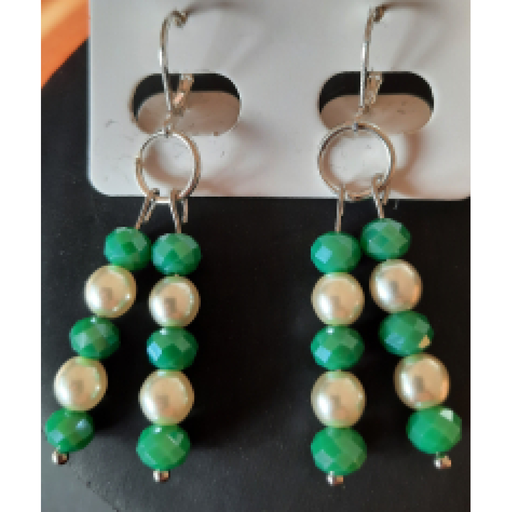 Zelfgemaakte Oorbel met Groen en Witte Glaskralen
