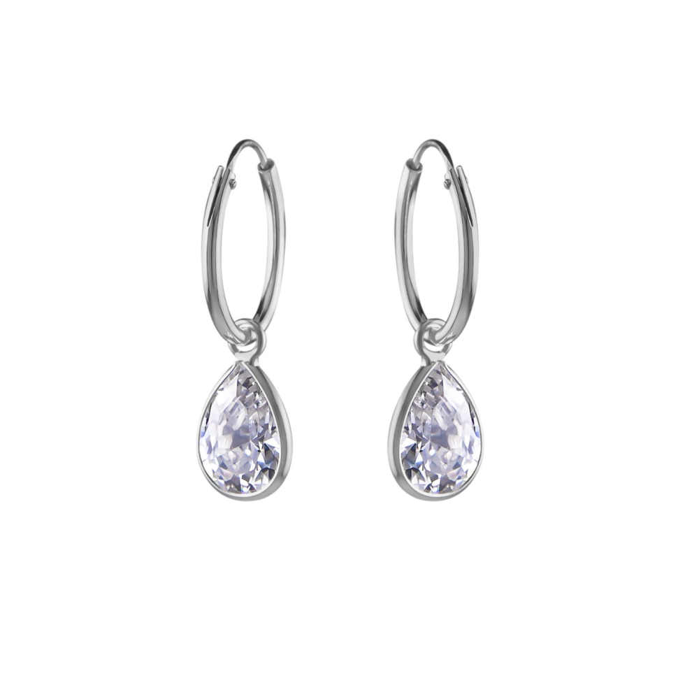 Deze zilveren oorringen met hanger combineren elegantie met een subtiel sprankelend accent. Aan de ring hangt een druppelvormige hanger van kristal, dat het licht op een prachtige manier vangt en weerkaatst.
