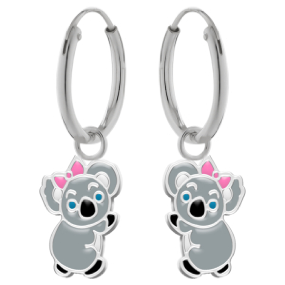 Deze zilveren oorringen met hanger zijn een schattige en vrolijke keuze voor kinderen die dol zijn op dieren. Aan de ring hangt een lieve koala beer, versierd met een roze strik, wat de oorbellen een speels en charmant detail geeft. Het ontwerp maakt ze perfect voor jonge dierenliefhebbers die graag vrolijke sieraden dragen.
