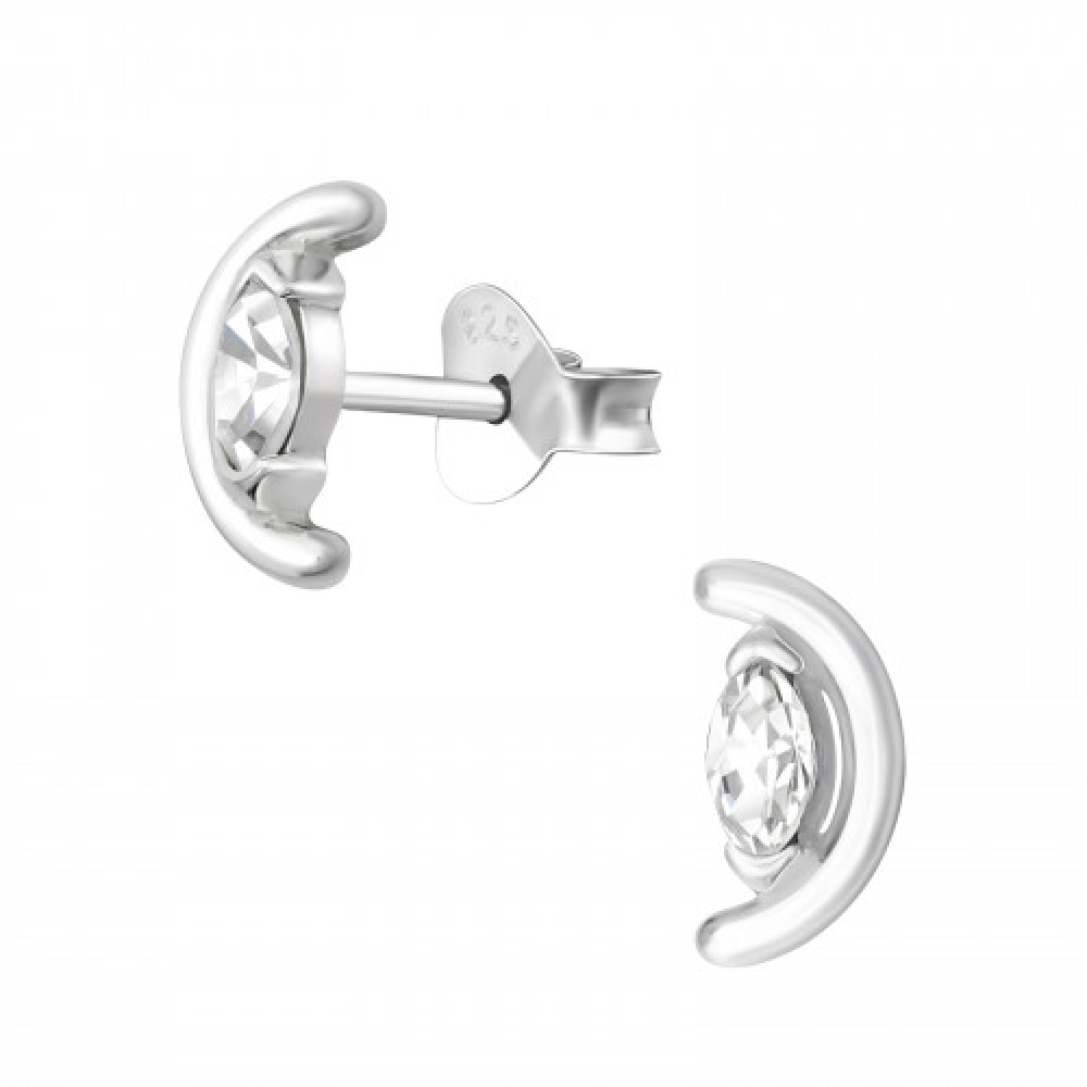 Leuke zilveren oorbellen van een maan met een zirkonia.