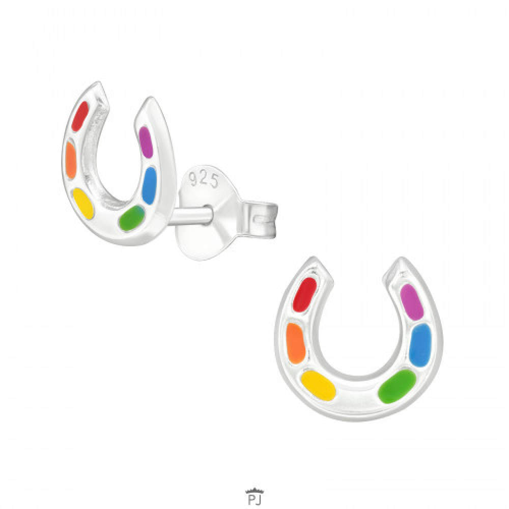 Leuke kinder oorbellen met een gekleurd hoefijzer