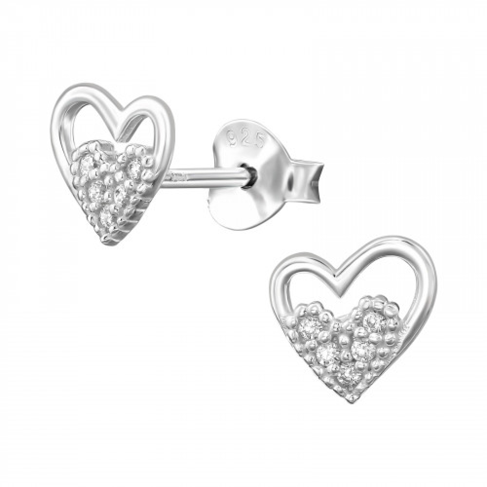 Leuke zilveren oorknopejs van een hart in hart.