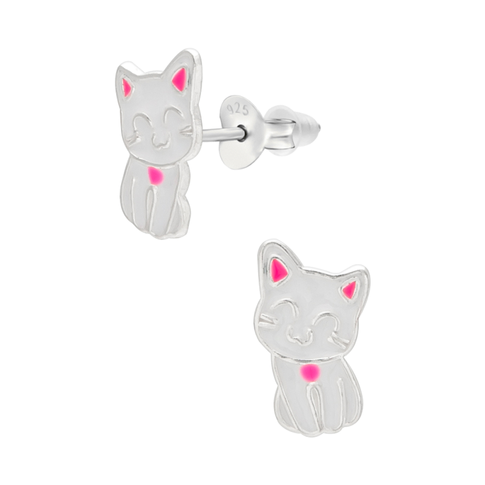 Deze zilveren oorstekers in de vorm van een kat met roze accenten zijn een schattig en speels sieraad speciaal voor kinderen. Het ontwerp laat een charmante kat zien, subtiel verfraaid met vrolijke roze details, waardoor de oorbellen direct de aandacht trekken en een vrolijke touch geven aan iedere outfit. De combinatie van zilver en zachte roze accenten zorgt voor een speels maar stijlvol effect dat jonge draagsters zal aanspreken.