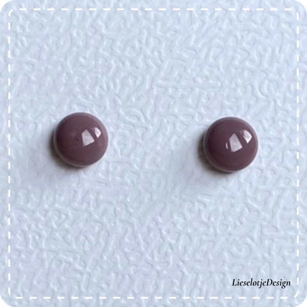 Handgemaakte paarse oorknopjes van glas.