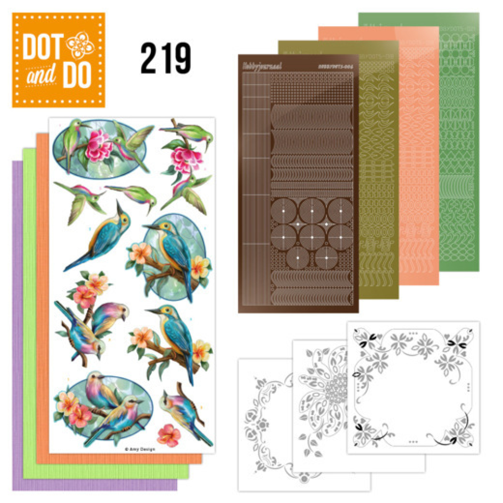 Deze handige Hobbydotssetjes bevatten drie 3D afbeeldingen en maar liefst vier Hobbydots stickervellen, drie kaarten Card Deco karton en drie met patronen voorbedrukte oplegkaarten. Deze setjes zijn te gebruiken zonder lichtbak, dus ook leuk om mee te nemen, of cadeau te doen als startersetje.