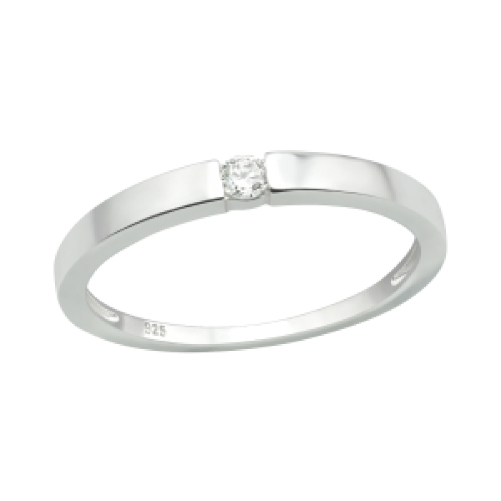 Mooie zilveren ring met 1 zirkonia. (Maat is binnenmaat ring in mm)