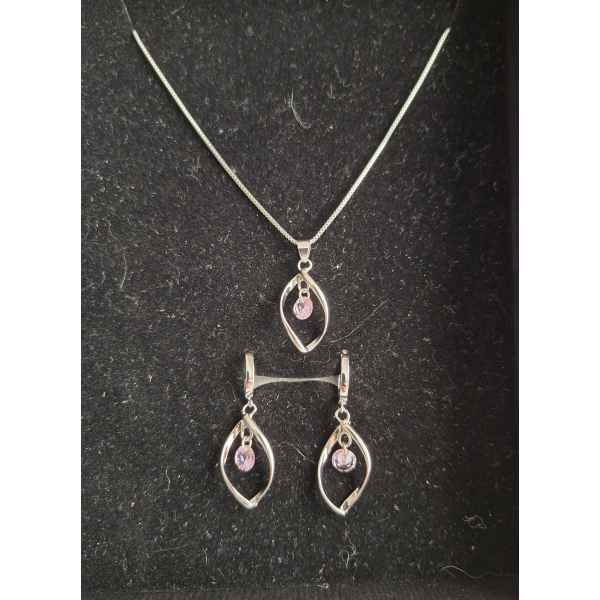 Dit prachtige setje bestaat uit een ketting en bijpassende oorbellen. De ketting waar de hanger aan hangt is gemaakt van 925 sterling zilver.