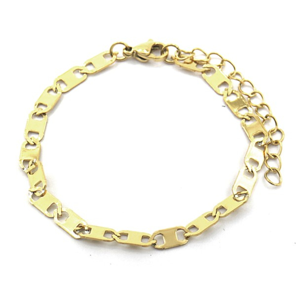 Armband dames stainless steel goudkleur platte schakel 4mm breed