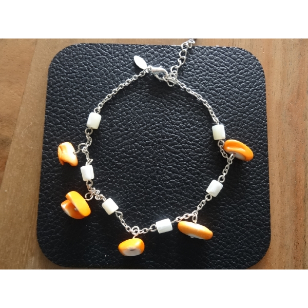 Enkelbandje zilverkleurig met oranje hangers