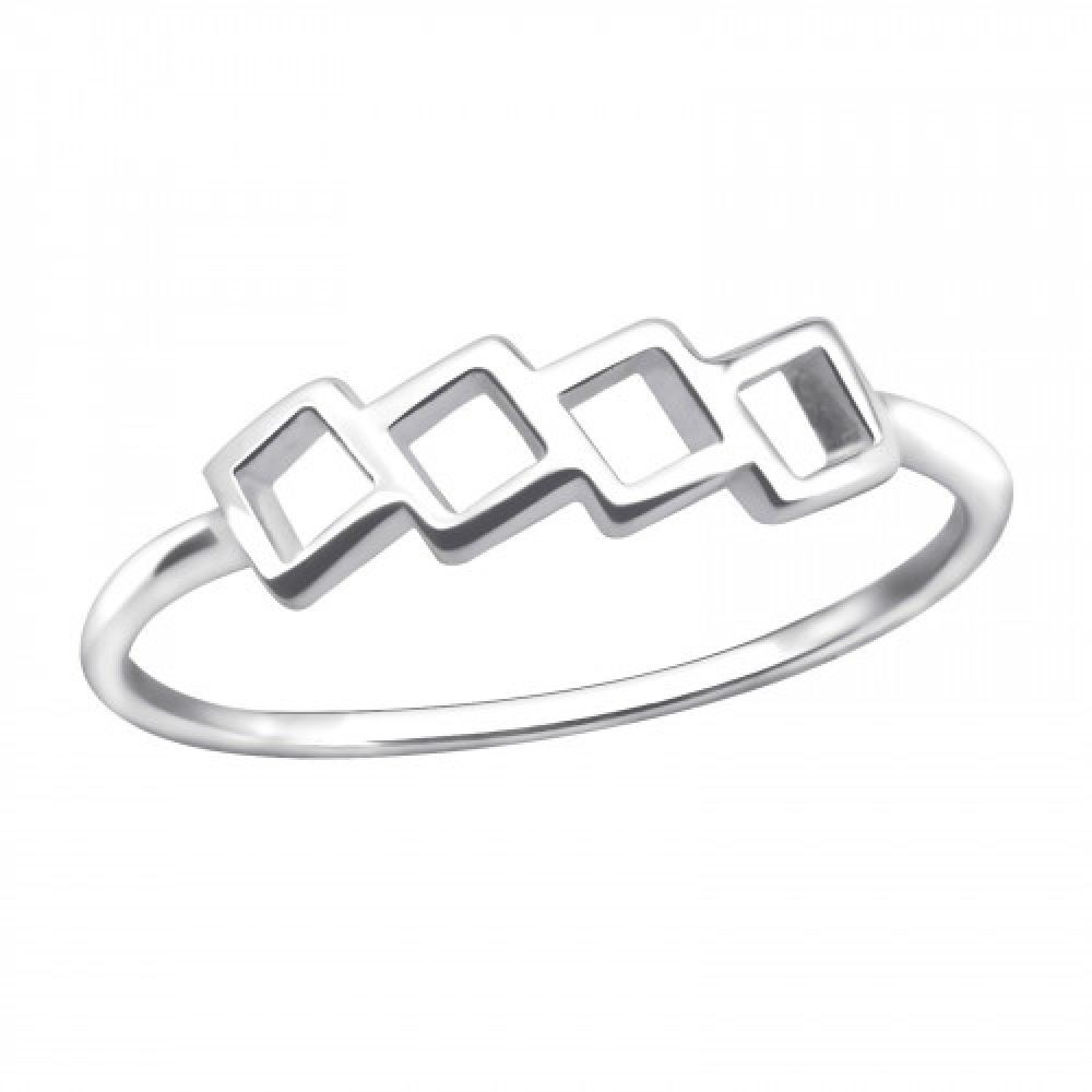 Mooie zilveren ring met 4 vierkanten. (Maat is binnenmaat ring in mm)