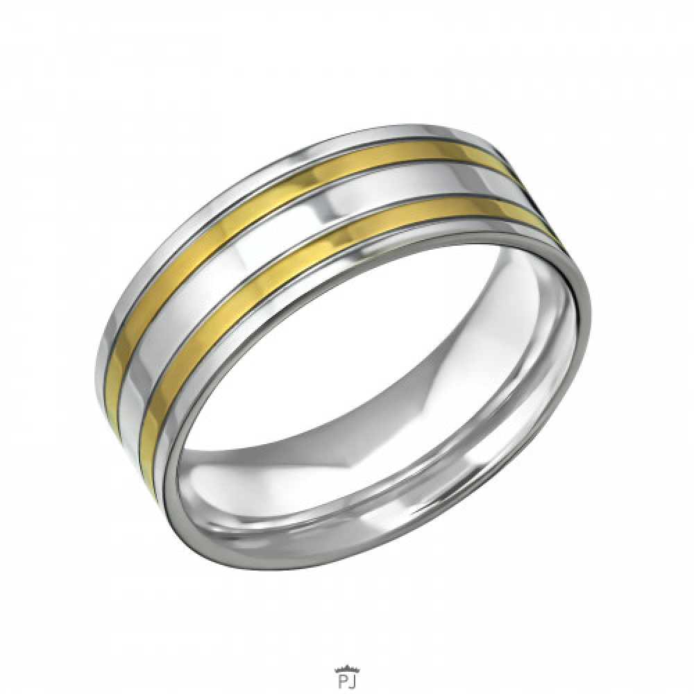 Ring rvs glanzend met 2 goudkleurige ringen