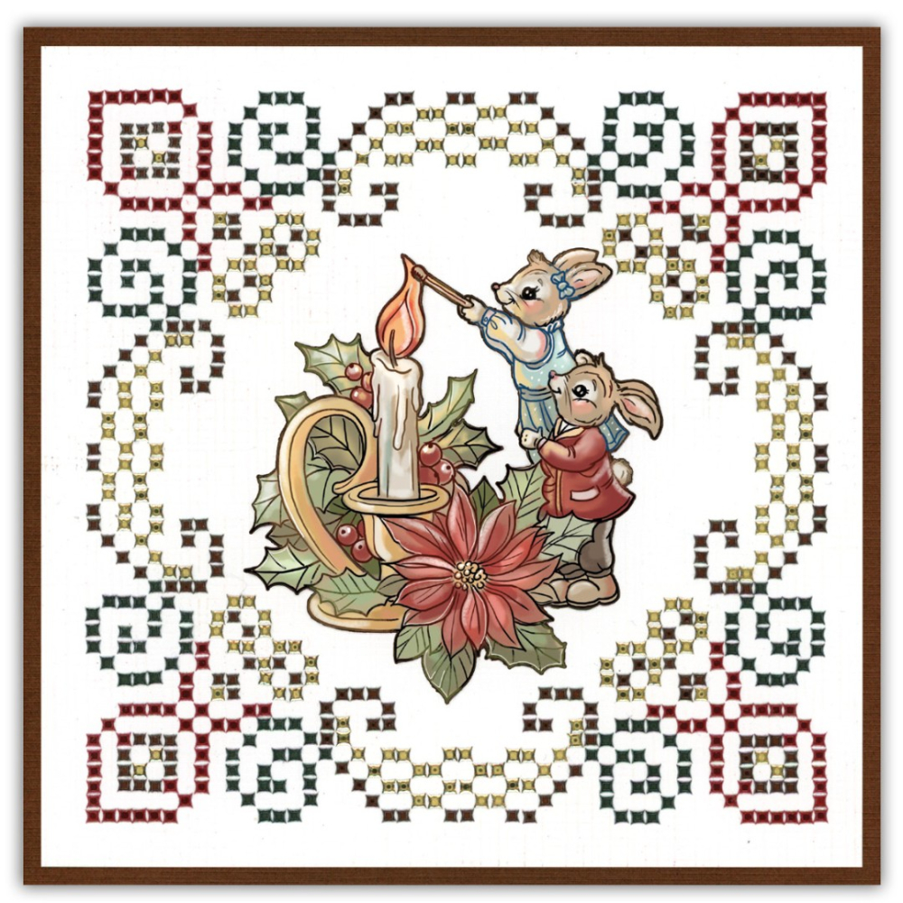 Deze handige set met Hobbydots-Sparkles bevat vier Sparkles stickervellen, drie oplegkaarten met patronen, drie 3D-afbeeldingen en drie vellen kaartkarton. Omdat het patroon in kleur is voorgedrukt op de oplegkaarten, kun je deze set gebruiken zonder Led Board.