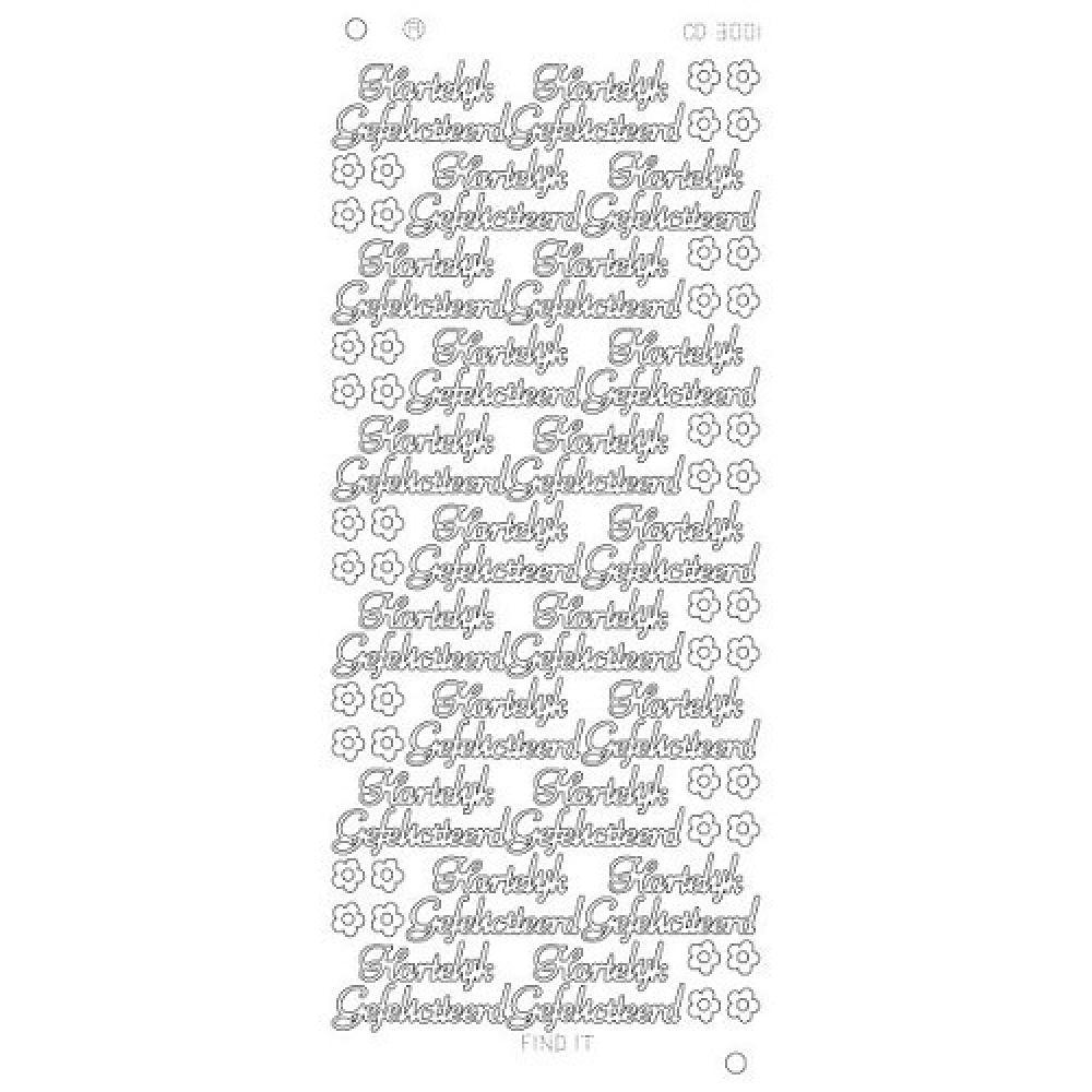 Stickervel met tekst :Hartelijk gefeliciteerd in de kleur zilver