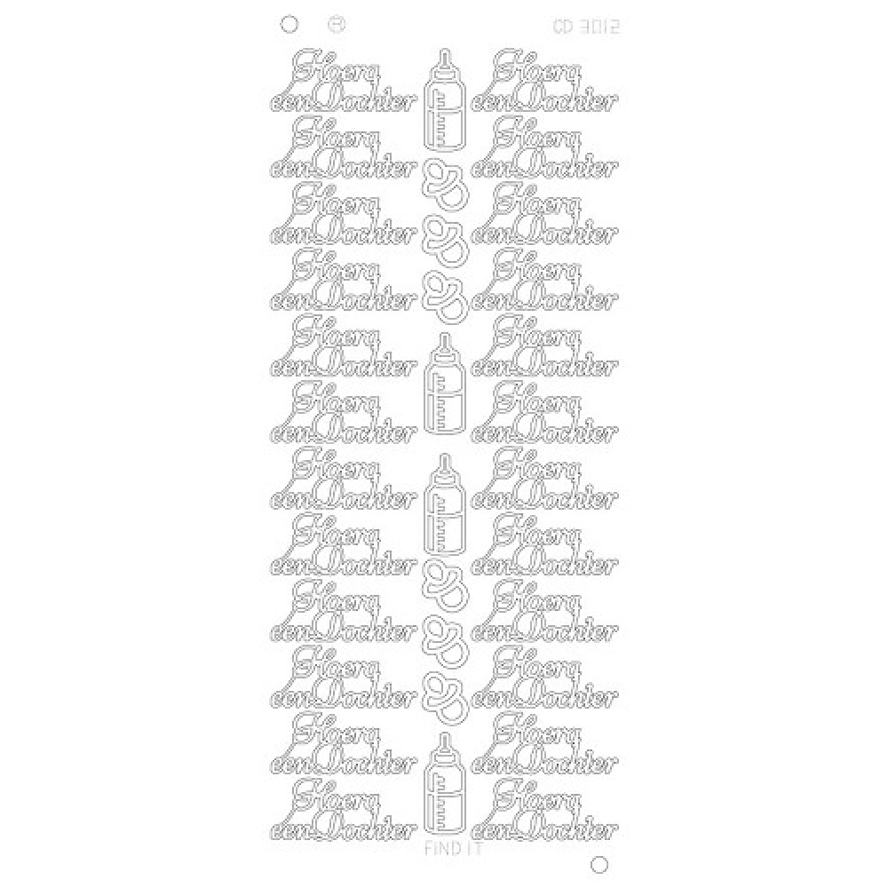 Stickervel met tekst :Hoera een dochter in de kleur zilver