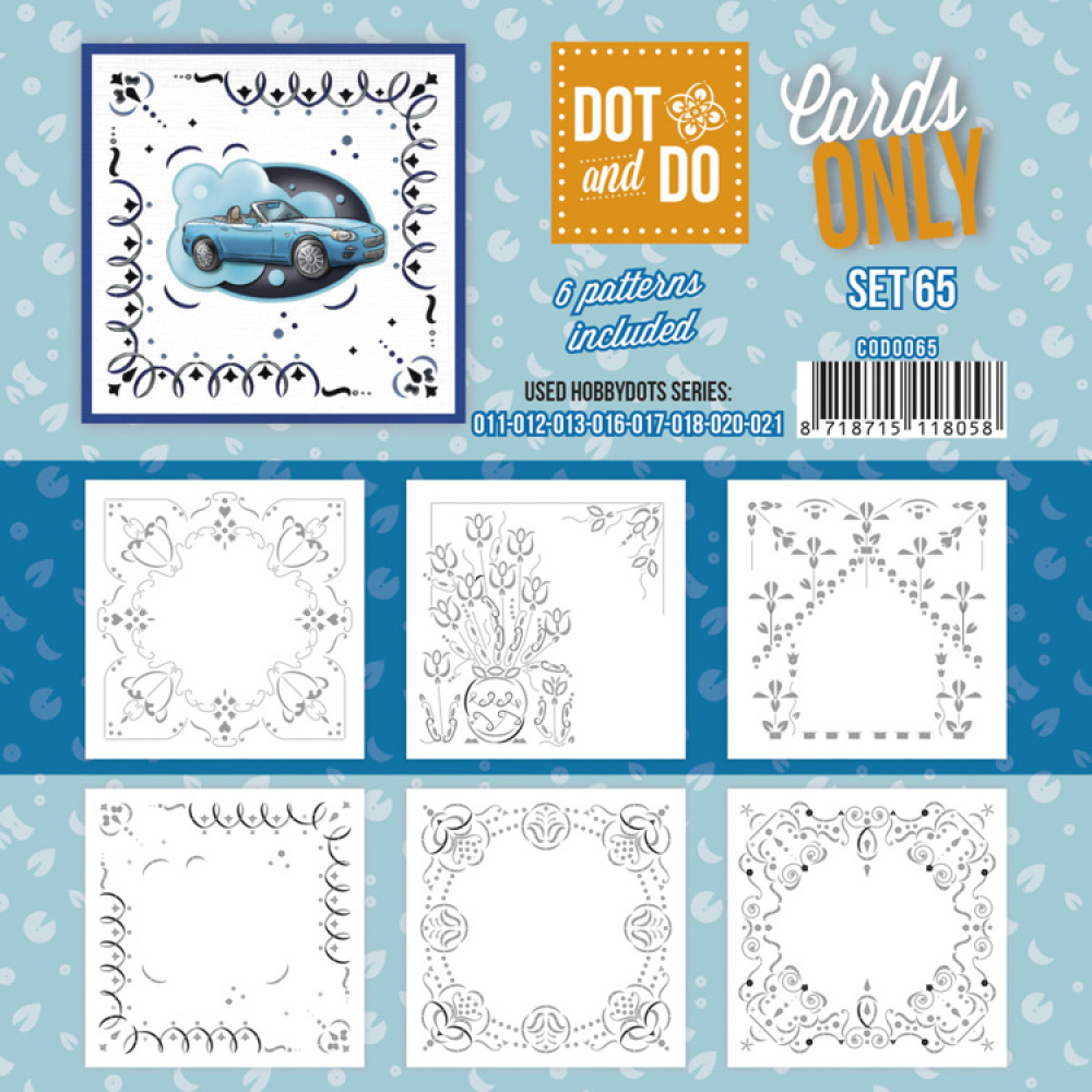 Per verpakking zes oplegkaartjes met op elk kaartje een ander Hobbydotspatroon.